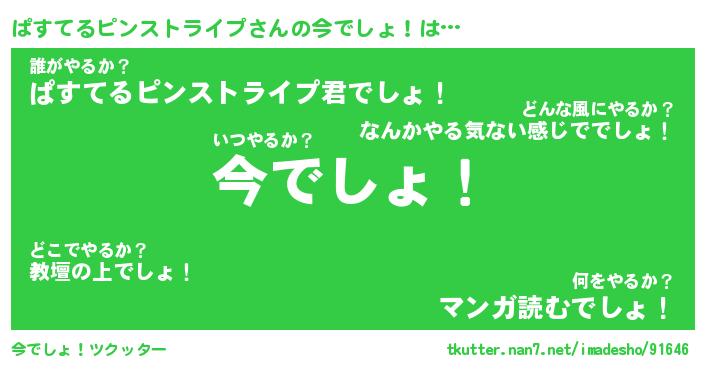 | 伝説のあだ名 | 『伝説のスナイパーぱすてるピンストライプ』 |