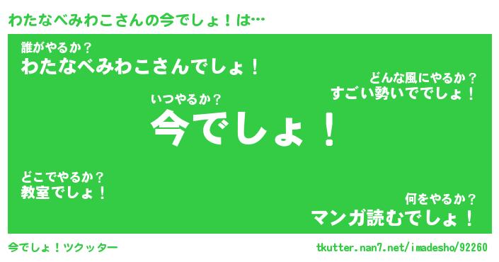 | 女子向けラノベタイトル風あだ名 | 『(仮)わたなべみわこのやんごとなき事情』 |