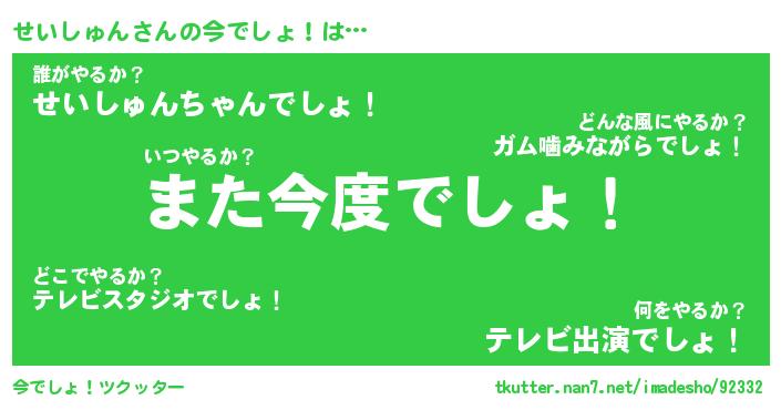 | 恥ずかしいあだ名 | 『プリティーせいしゅん』『せいっちょ』 |