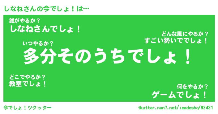 | ヒーロー風カッコイイあだ名 | 『スーパーシナネ』『ウルトラしなねマン』 |