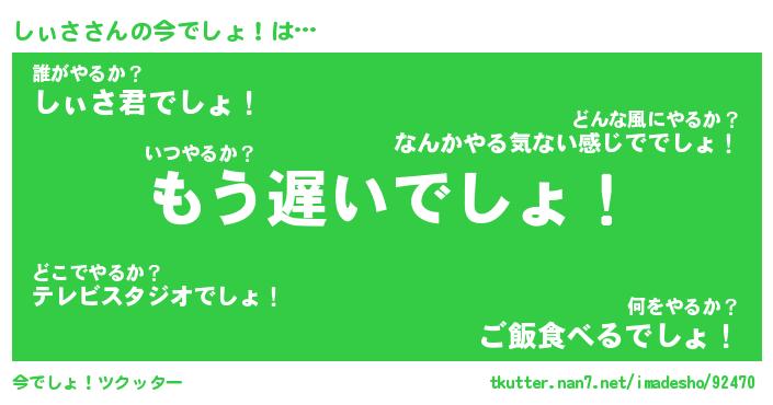 | 意味不明あだ名 | 『ペロリンしぃさ』『しぃさフォーエバー』 |