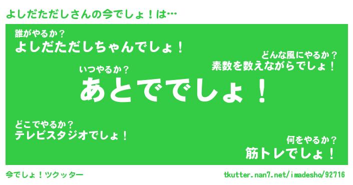 | ヒーロー風カッコイイあだ名 | 『スーパーヨシダタダシ』『銀牙騎士ヨシ』 |
