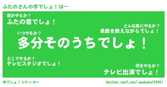 | ヘコむあだ名 | 『ふたにー』『なまこ酢』『ふたお』 |