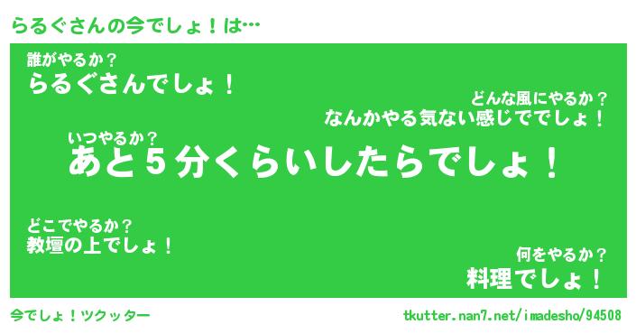 | ヒーロー風カッコイイあだ名 | 『スーパーラルグ』『ウルトラらるぐマン』 |
