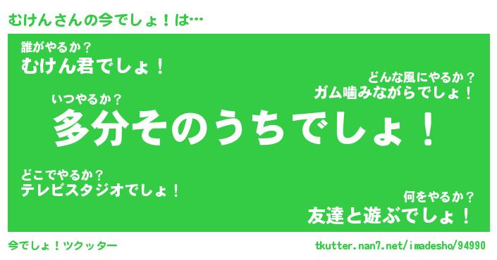 | 意味不明あだ名 | 『ペロリンむけん』『むけんフォーエバー』 |