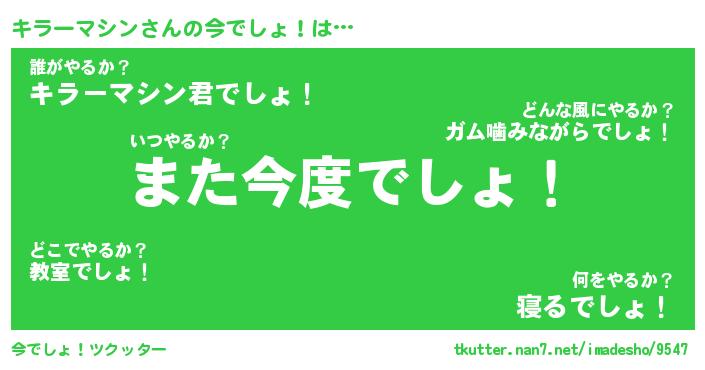 | ヘコむあだ名 | 『キラにー』『なまこ酢』『キラ太郎』 |