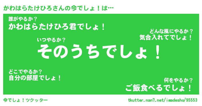 | 肩書あだ名 | 『かわはらたけひろ店長』 |