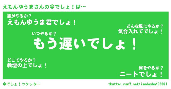 | 伝説のあだ名 | 『伝説のスナイパーえもんゆうま』 |