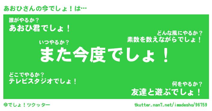 | 胡散臭い通販商品みたいなあだ名 | 『億万長者になれるブレスレット…その名も「あおひ」』 |