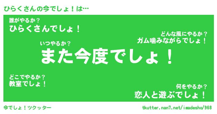 | ピコ太郎風あだ名 | 『ヒコ一郎』『ピヒ十郎』『ヒラ四郎』 |