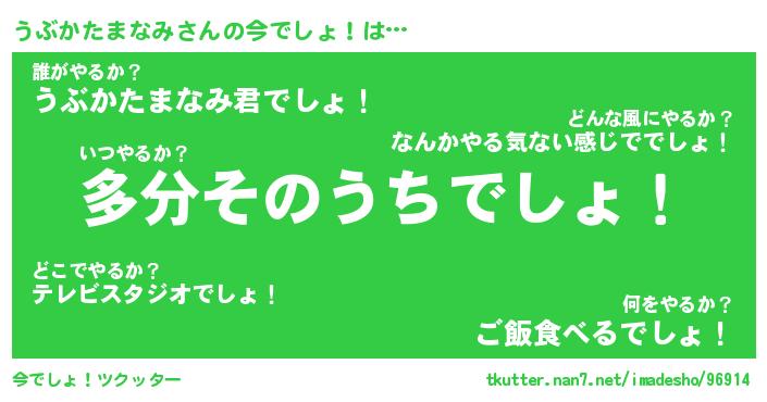 | 恥ずかしいあだ名 | 『プリティーうぶかたまなみ』『うぶちん』 |