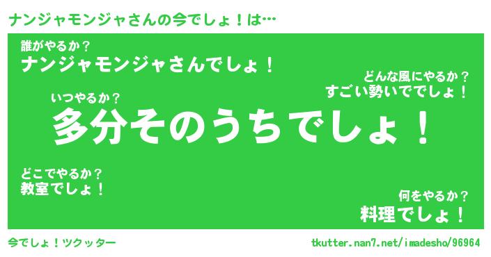| 料理風あだ名 | 『節約★ナンジャモンジャと油揚げの玉子丼』 |