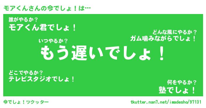| 肩書あだ名 | 『モアくん御曹司』『モアくん総理大臣』 |