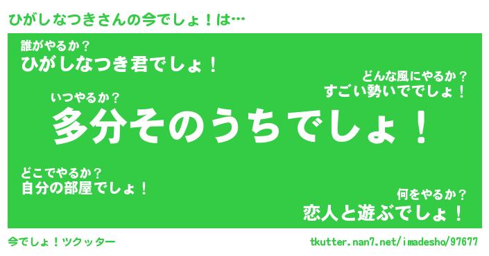 | ヒーロー風カッコイイあだ名 | 『スーパーヒガシナツキ』『魔戒騎士ヒガ』 |