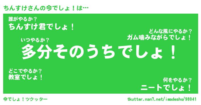 | 男性向けラノベタイトル風あだ名 | 『ちんすけの憂鬱』 |