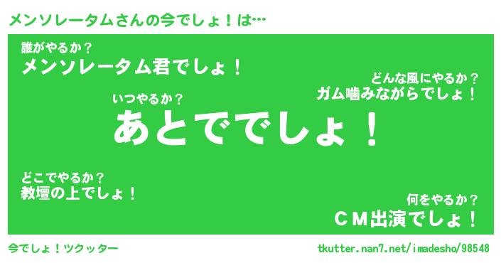 | ヘコむあだ名 | 『メンふぇ~』『なまこ酢』『メンお』 |