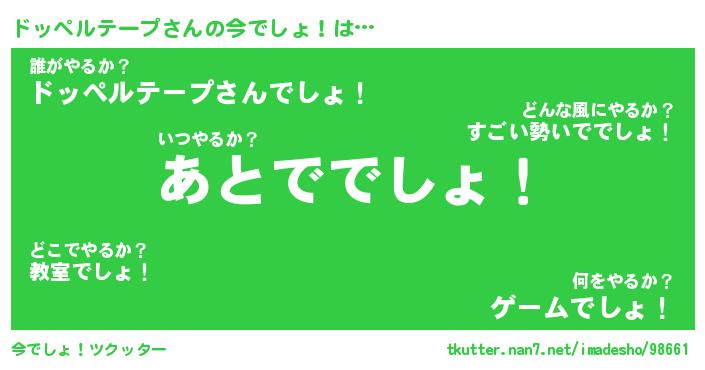 | 料理風あだ名 | 『節約★ドッペルテープと油揚げの玉子丼』 |
