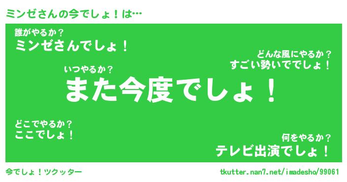 | ヘコむあだ名 | 『ミンもー』『牛乳』『ミンぷりん』 |