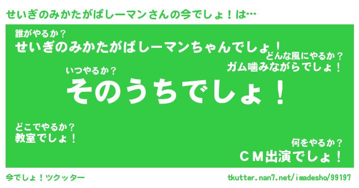 | 胡散臭い通販商品みたいなあだ名 | 『必ず成功する霊験あらたかなお札…その名も「せいぎのみかたがばしーマン」』 |