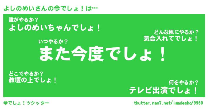 | ヒーロー風カッコイイあだ名 | 『スーパーヨシノメイ』『幻影騎士ヨシ』 |