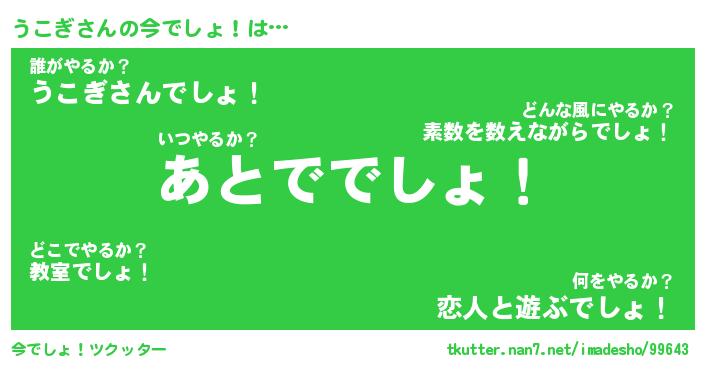 | 胡散臭い通販商品みたいなあだ名 | 『モテモテ間違いなし水晶球…その名も「うこぎ」』 |