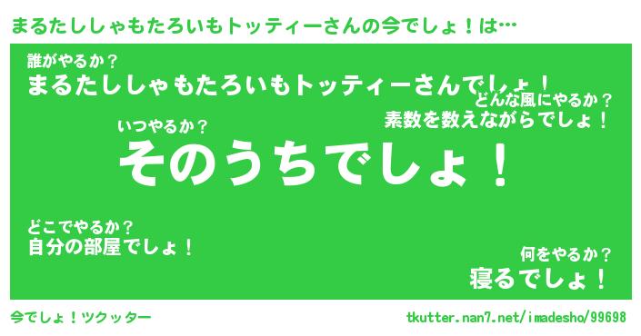 | 胡散臭い通販商品みたいなあだ名 | 『必ず成功するブレスレット…その名も「まるたししゃもたろいもトッティー」』 |