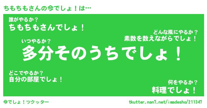 | 料理風あだ名 | 『節約★ちもちもと油揚げの玉子丼』 |