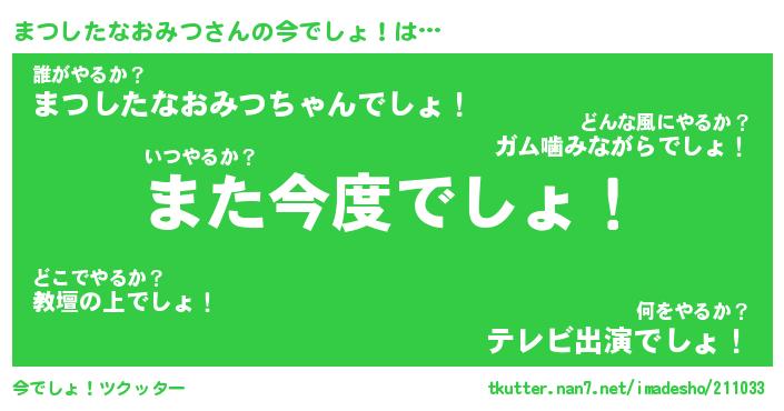 | 胡散臭い通販商品みたいなあだ名 | 『億万長者になれる水晶球…その名も「まつしたなおみつ」』 |