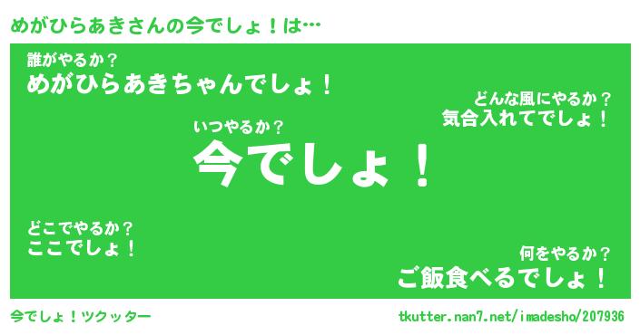 | 肩書あだ名 | 『めがひらあきCEO』『めがひらあき団長』 |