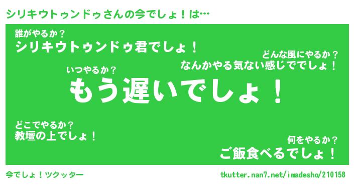 | 料理風あだ名 | 『節約★シリキウトゥンドゥと油揚げの玉子丼』 |