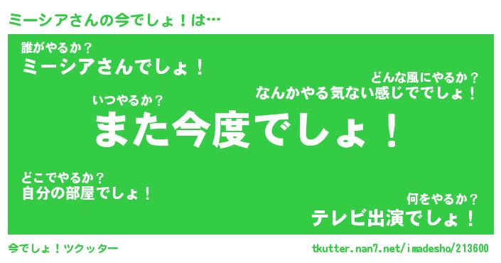 | 意味不明あだ名 | 『ペロリンミーシア』『永久保存ミーシア』 |