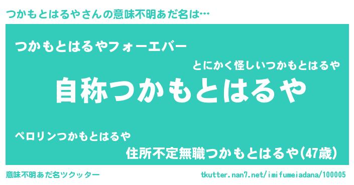 | 女子向けラノベタイトル風あだ名 | 『つかもとはるやなんてお断りですっ。』 |