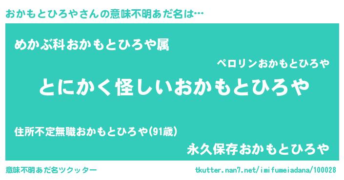 | 女子向けラノベタイトル風あだ名 | 『おかもとひろやの卵を拾いまして』 |