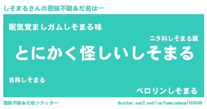 | ポケモン風あだ名 | 『シソゴンZ』『ヒシソマル』 |
