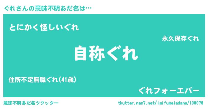 | 男性向けラノベタイトル風あだ名 | 『Re:ぐれから始める異世界生活』 |