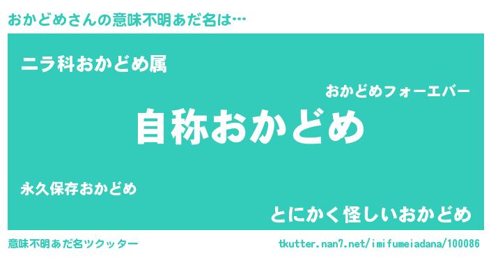 | 男性向けラノベタイトル風あだ名 | 『Re:おかどめから始める異世界生活』 |