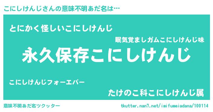 | ヘコむあだ名 | 『こにしけんじ(苦笑)』『こにお』 |