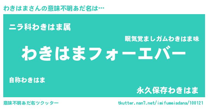 | 伝説のあだ名 | 『最強の忍者わきはま』 |