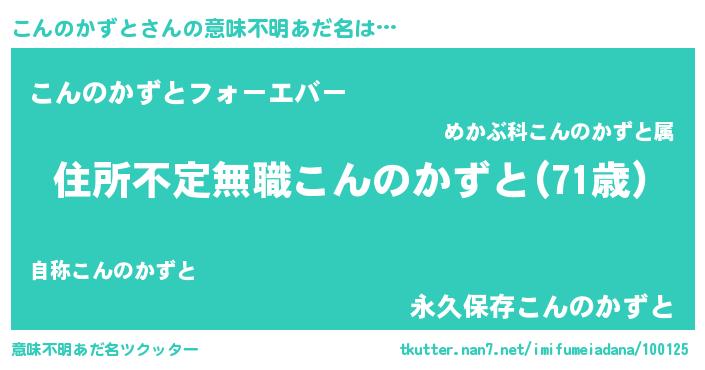 | 男性向けラノベタイトル風あだ名 | 『この素晴らしい世界にこんのかずとを!』 |