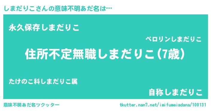 | 胡散臭い通販商品みたいなあだ名 | 『あなたにだけ特別に提供する100年もののヴィンテージワイン…その名も「しまだりこ」』 |