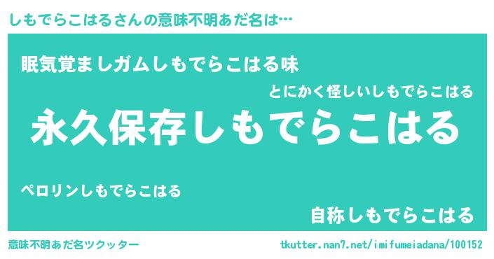 | ヘコむあだ名 | 『しもでらこはる(震え声)』『しもを』 |