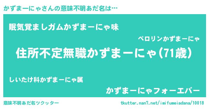 | 男性向けラノベタイトル風あだ名 | 『この素晴らしい世界にかずまーにゃを!』 |