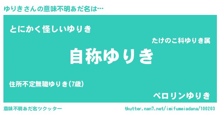 | 男性向けラノベタイトル風あだ名 | 『Re:ゆりきから始める異世界生活』 |