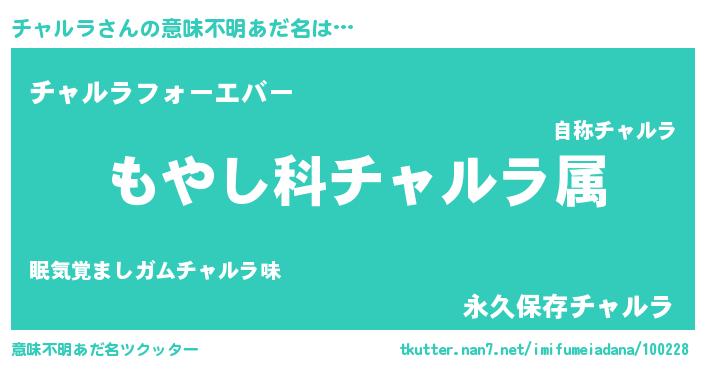 | ヒーロー風カッコイイあだ名 | 『ウルトラチャルラマン』『ネオチャルラ』 |