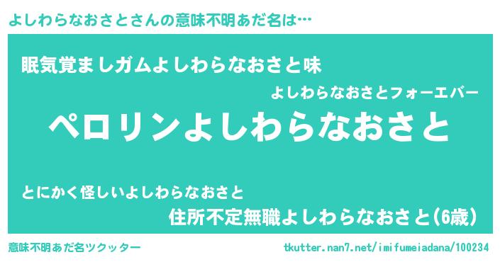 | 男性向けラノベタイトル風あだ名 | 『ヨシワラナオサトアートオンライン』 |