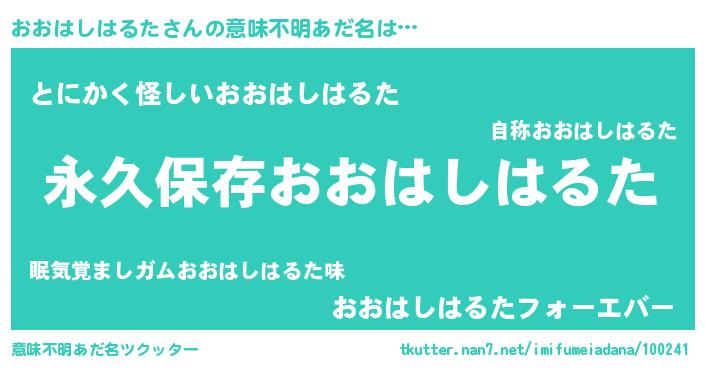 | ポケモン風あだ名 | 『ゼニオオ』『ヒオオハシハルタ』 |