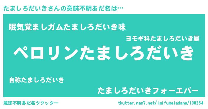 | 胡散臭い通販商品みたいなあだ名 | 『億万長者になれる水晶球…その名も「たましろだいき」』 |