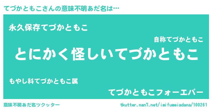 | 欧米人風あだ名 | 『ウサインてづかともこ』 |