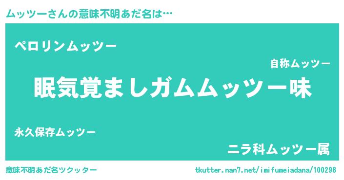 | ヘコむあだ名 | 『ムッにー』『ムッツー(笑)』 |