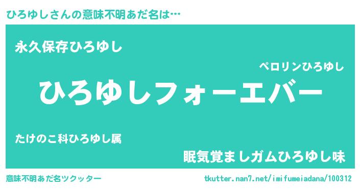 | ヒーロー風カッコイイあだ名 | 『ウルトラひろゆしマン』『ネオヒロユシ』 |